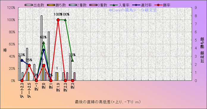 コース、最後の直線の高低差別成績(平地) |