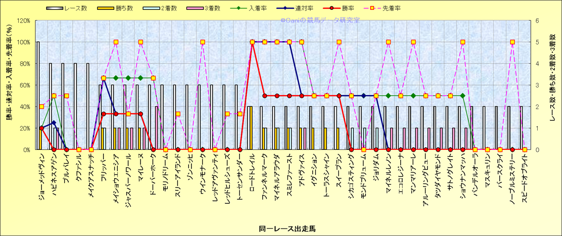 ライバル(相性)解析 同一レースに下記馬が出走した場合の成績とその馬に先着する先着率 |