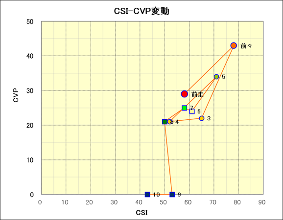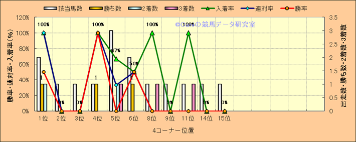 近走における4コーナーでの位置取りと上がり順位(頭数補正後) |