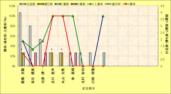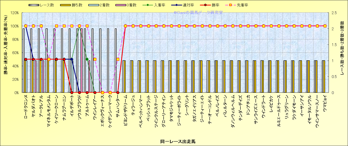 ライバル(相性)解析 同一レースに下記馬が出走した場合の成績とその馬に先着する先着率 |