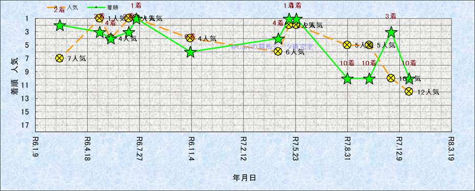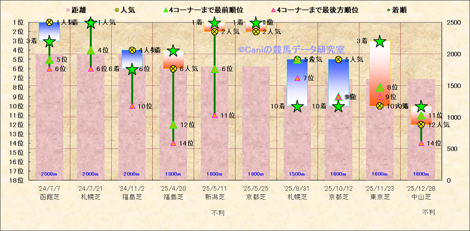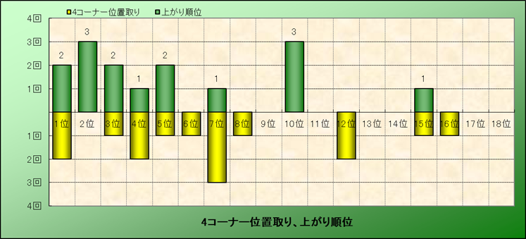 脚質解析 近20レースの4コーナーでの位置取りと上がり順位(頭数補正後) |
