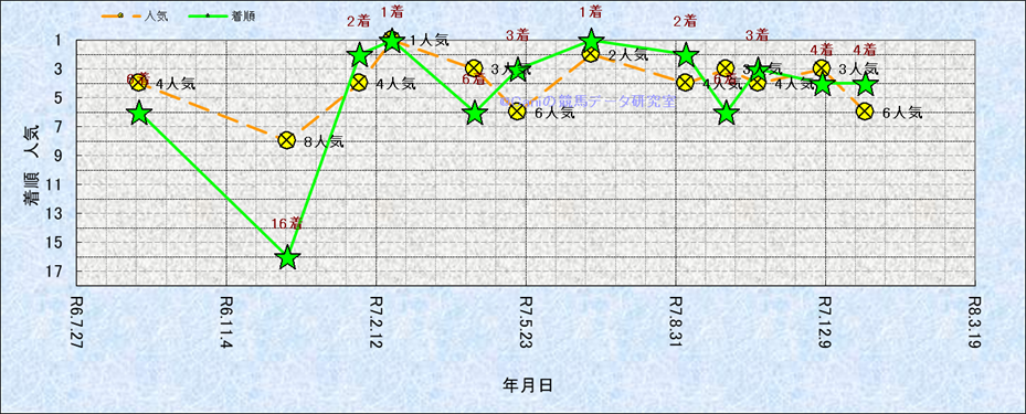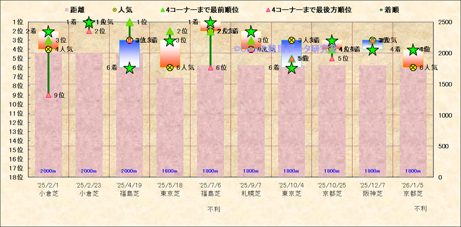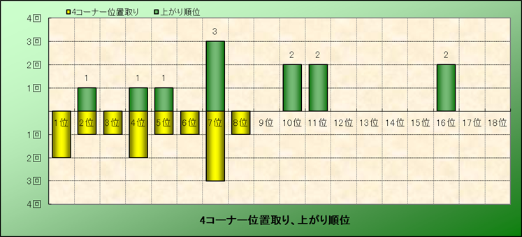 脚質解析 近20レースの4コーナーでの位置取りと上がり順位(頭数補正後) |