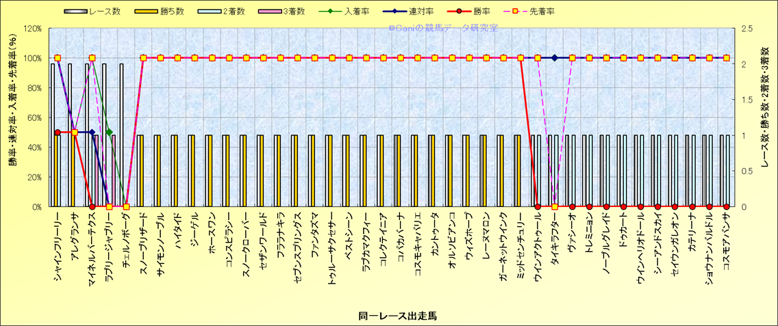 ライバル(相性)解析 同一レースに下記馬が出走した場合の成績とその馬に先着する先着率 |