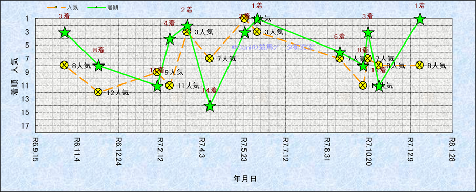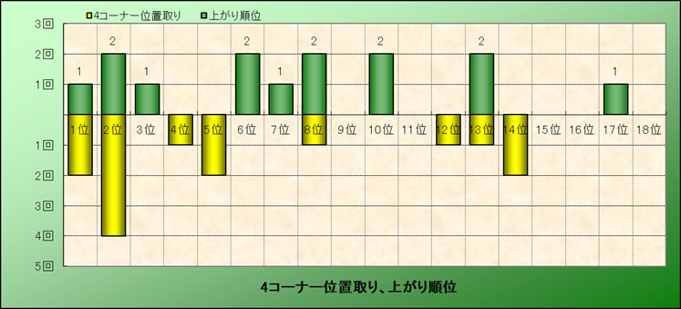 脚質解析 近20レースの4コーナーでの位置取りと上がり順位(頭数補正後) |