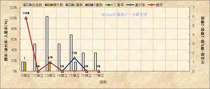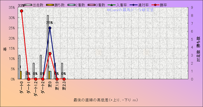 コース、最後の直線の高低差別成績(平地) |