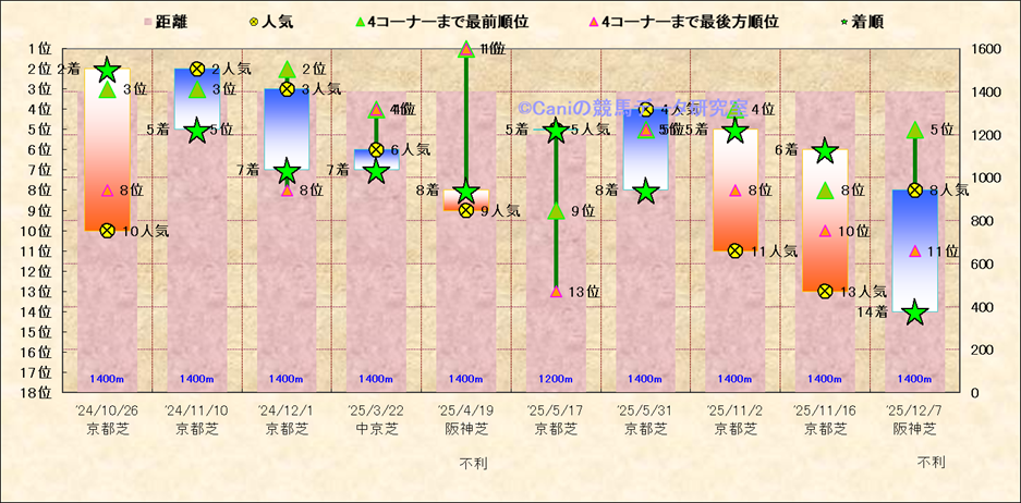 近10走 人気−着順-位置取りの推移 |