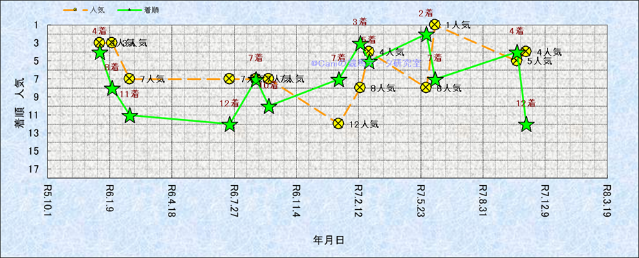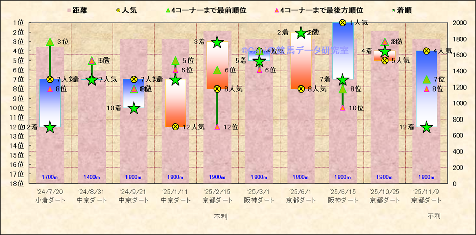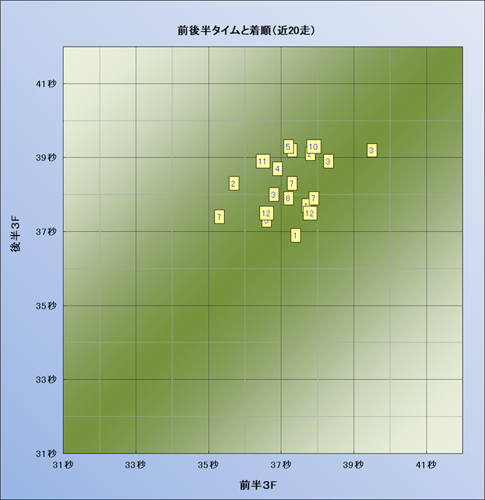 脚質解析 近20レースの4コーナーでの位置取りと上がり順位(頭数補正後) |