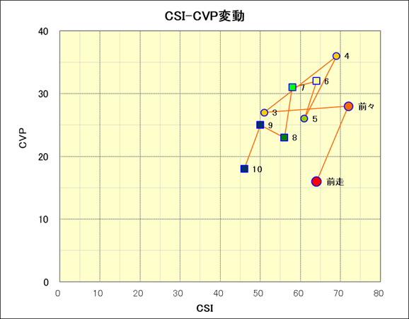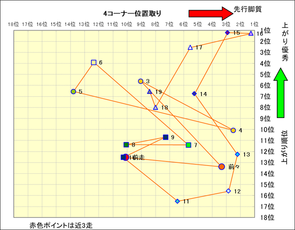 近走における4コーナーでの位置取りと上がり順位(頭数補正後) |
