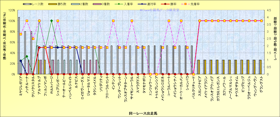 ライバル(相性)解析 同一レースに下記馬が出走した場合の成績とその馬に先着する先着率 |