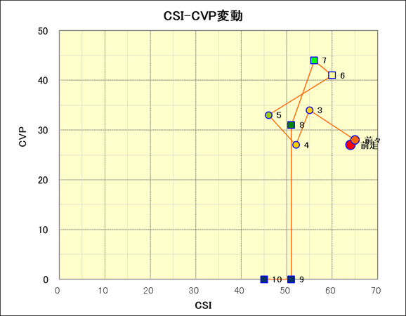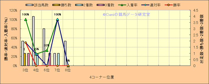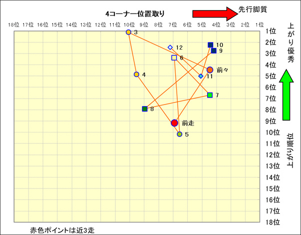 近走における4コーナーでの位置取りと上がり順位(頭数補正後) |