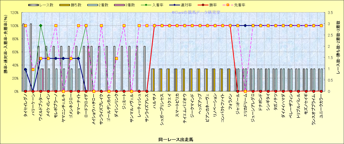 ライバル(相性)解析 同一レースに下記馬が出走した場合の成績とその馬に先着する先着率 |