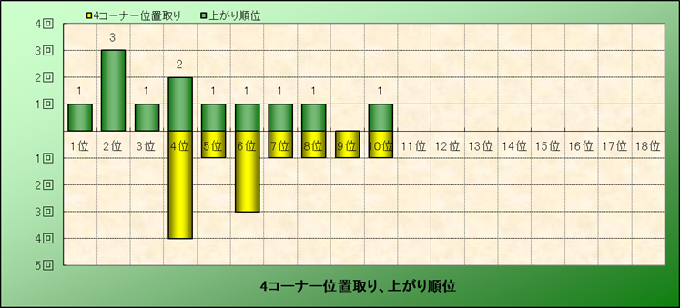 脚質解析 近20レースの4コーナーでの位置取りと上がり順位(頭数補正後) |