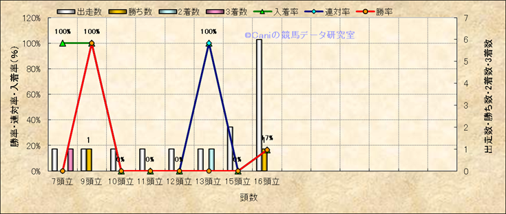 コース、最後の直線の高低差別成績(平地) |