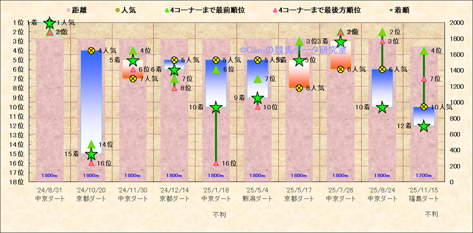 近10走 人気−着順-位置取りの推移 |