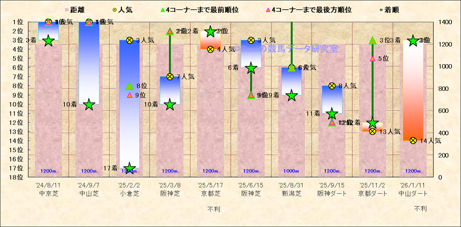 近10走 人気−着順-位置取りの推移 |