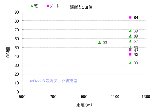 コース、最後の直線の長さ別成績(平地) |