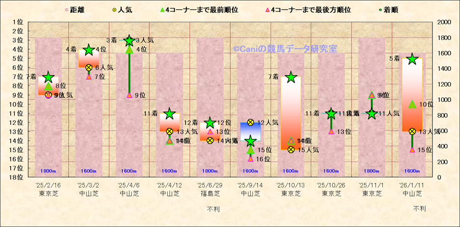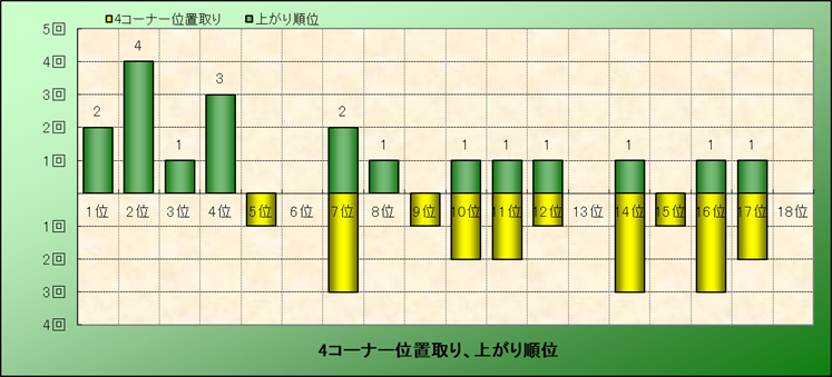 脚質解析 近20レースの4コーナーでの位置取りと上がり順位(頭数補正後) |