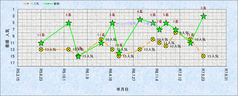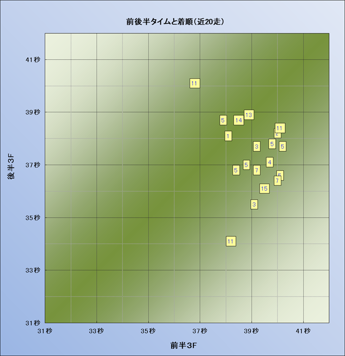 脚質解析 近20レースの4コーナーでの位置取りと上がり順位(頭数補正後) |