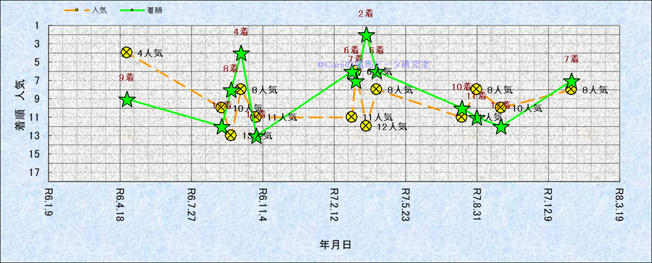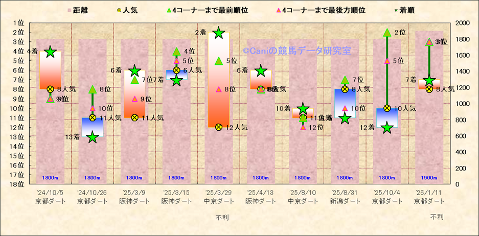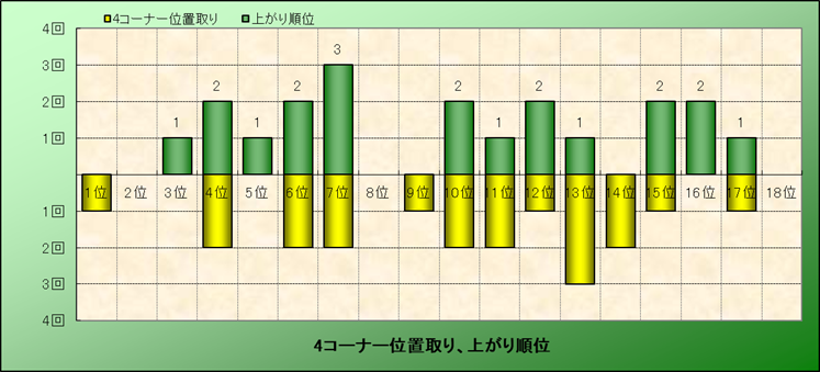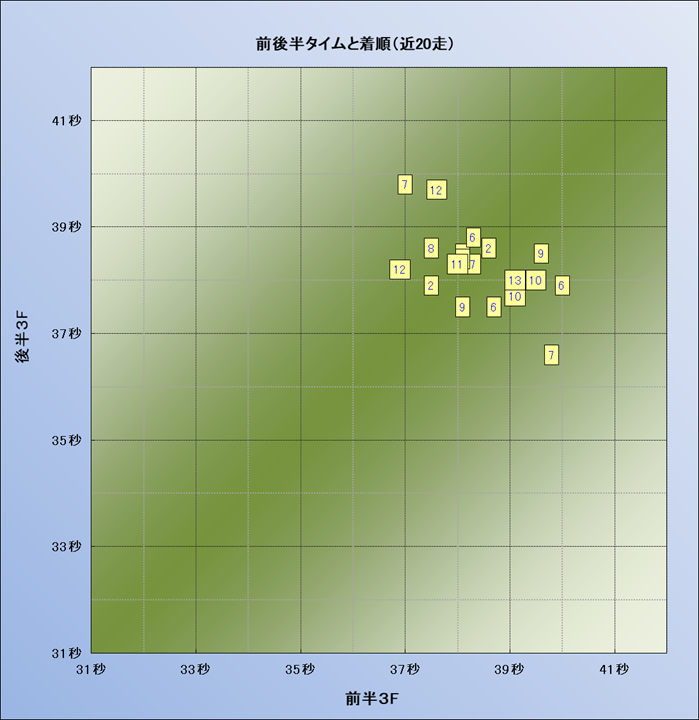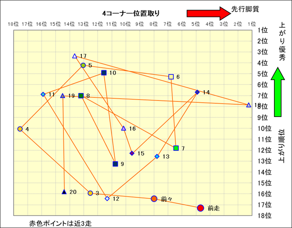 脚質解析 近20レースの4コーナーでの位置取りと上がり順位(頭数補正後) |