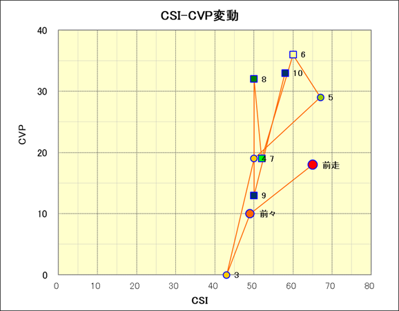 近走における4コーナーでの位置取りと上がり順位(頭数補正後) |