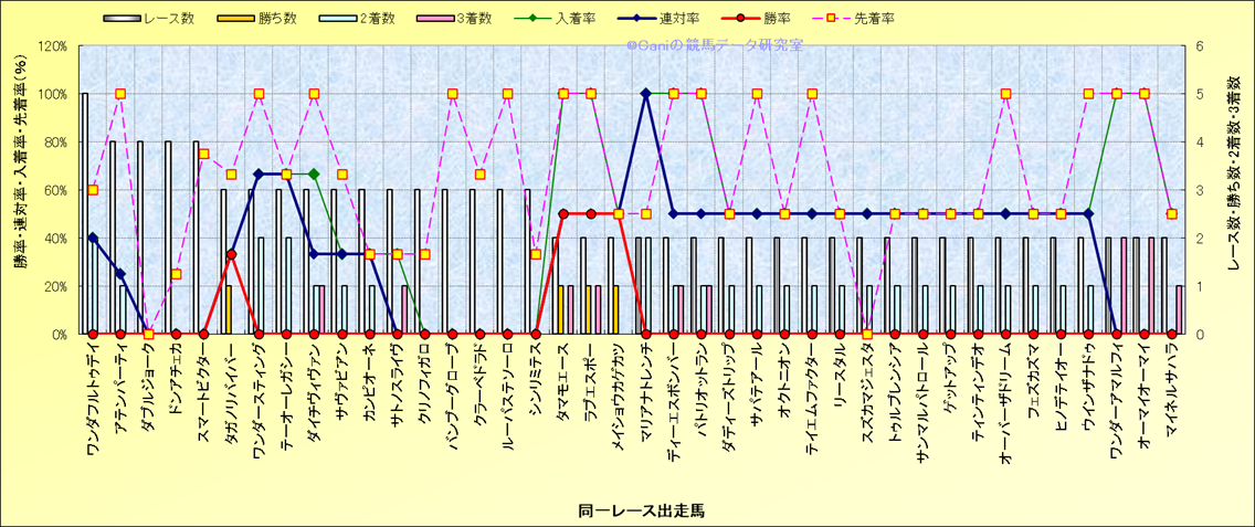 ライバル(相性)解析 同一レースに下記馬が出走した場合の成績とその馬に先着する先着率 |