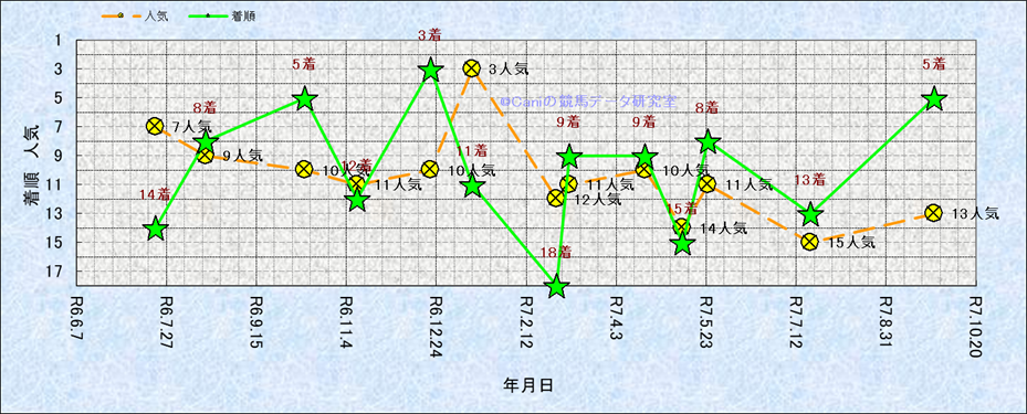 脚質解析 近20レースの4コーナーでの位置取りと上がり順位(頭数補正後) |