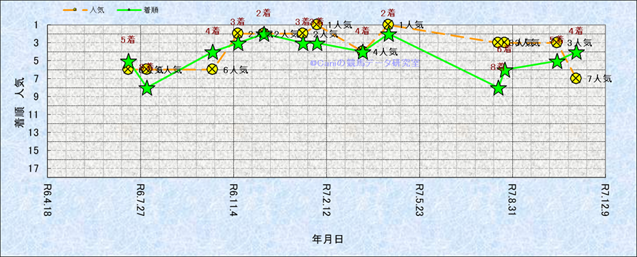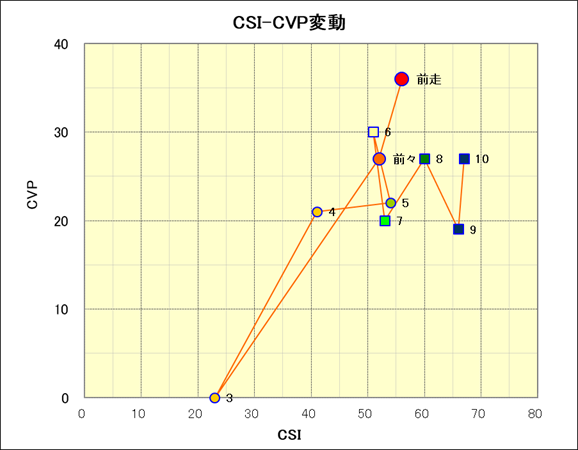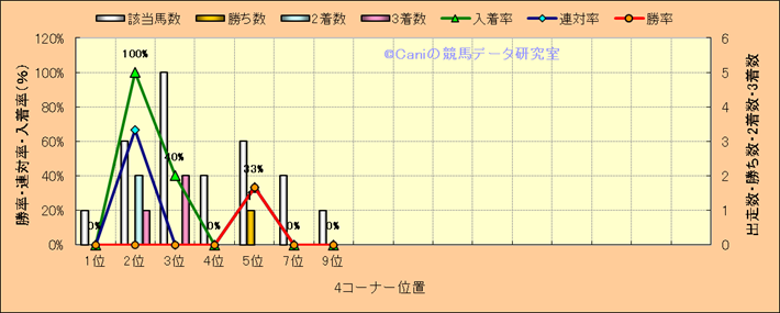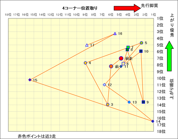 近走における4コーナーでの位置取りと上がり順位(頭数補正後) |