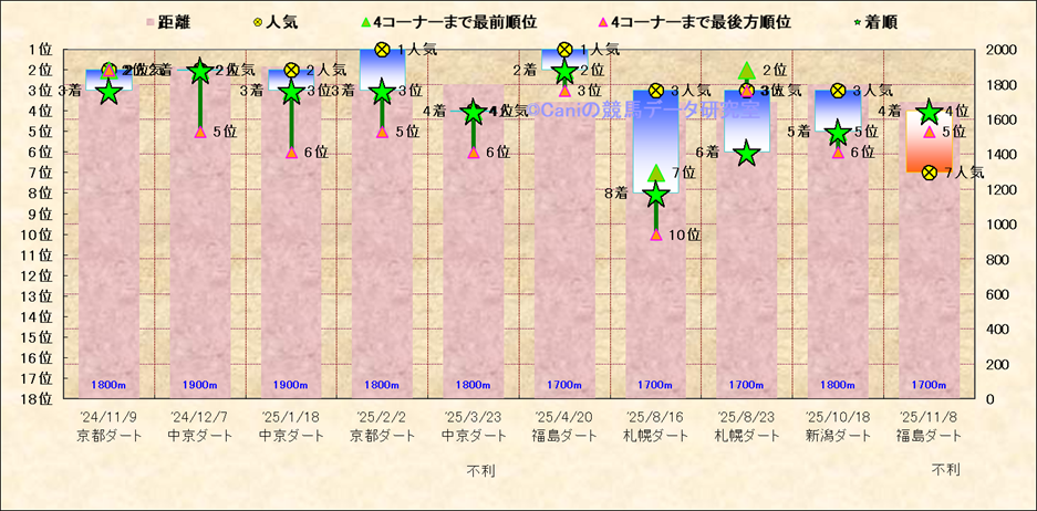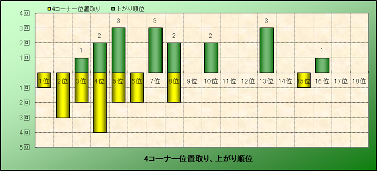 脚質解析 近20レースの4コーナーでの位置取りと上がり順位(頭数補正後) |