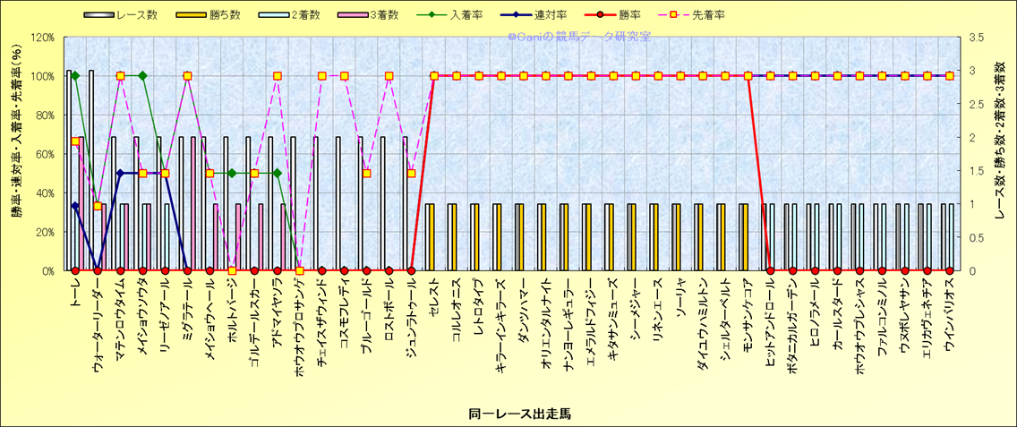 ライバル(相性)解析 同一レースに下記馬が出走した場合の成績とその馬に先着する先着率 |