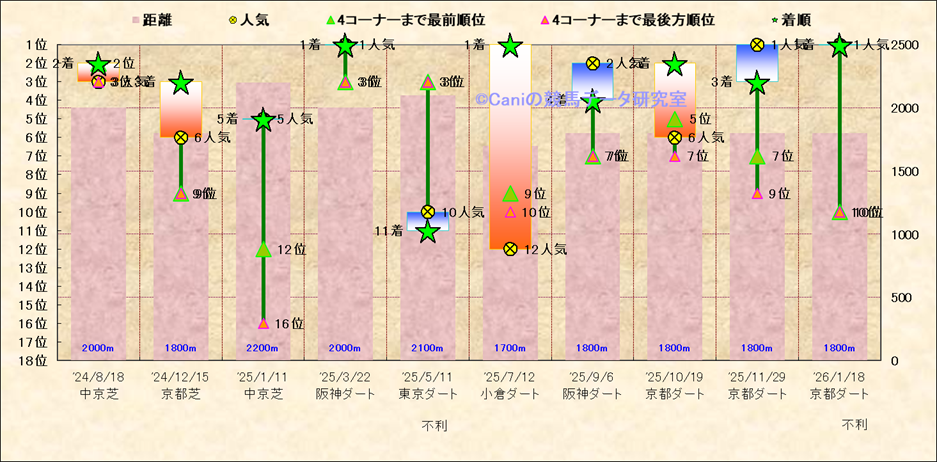 近10走 人気−着順-位置取りの推移 |