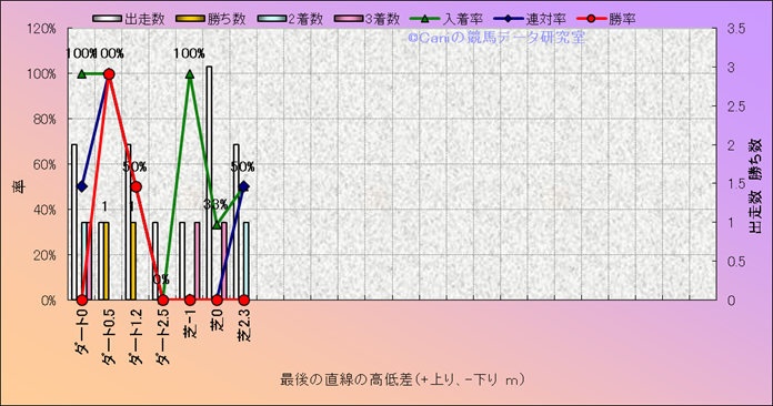 コース、最後の直線の高低差別成績(平地) |