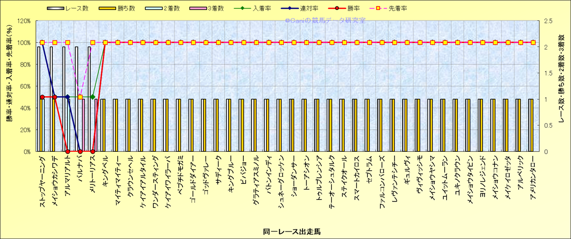 ライバル(相性)解析 同一レースに下記馬が出走した場合の成績とその馬に先着する先着率 |