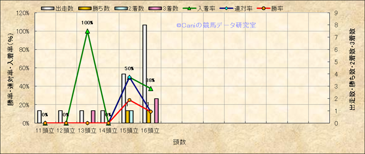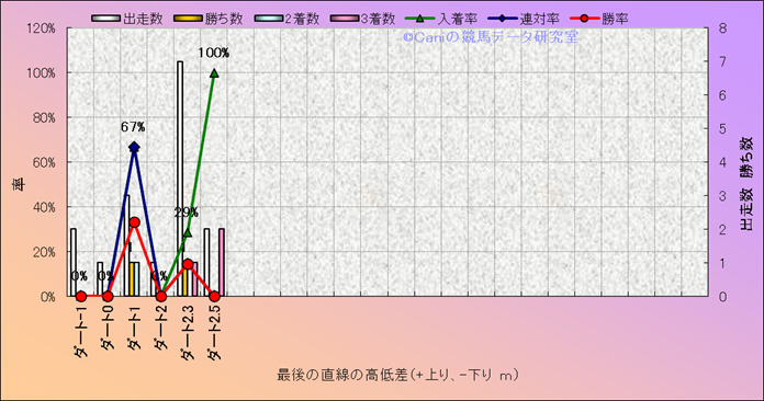コース、最後の直線の高低差別成績(平地) |