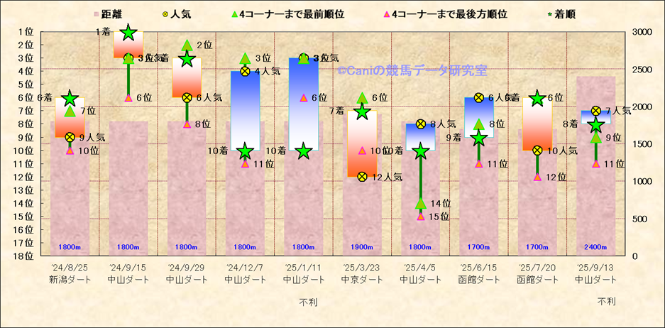 近10走 人気−着順-位置取りの推移 |