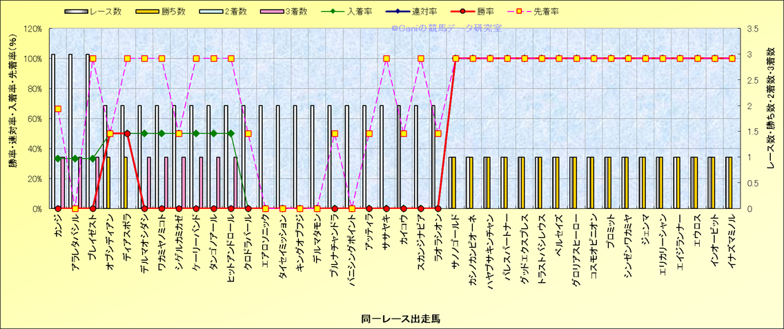 ライバル(相性)解析 同一レースに下記馬が出走した場合の成績とその馬に先着する先着率 |