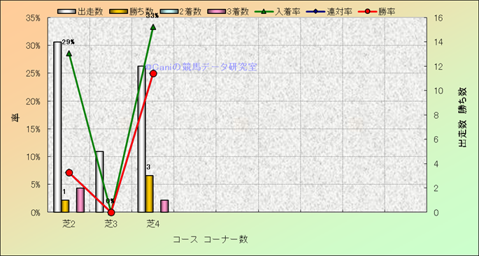 コース、コーナー数別成績(平地) |