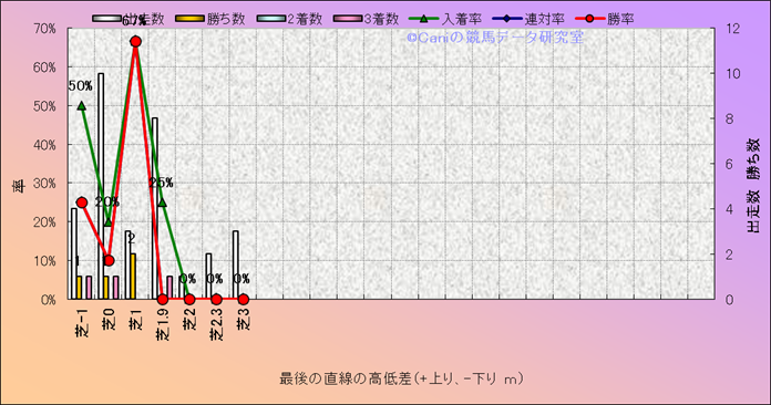 コース、最後の直線の高低差別成績(平地) |