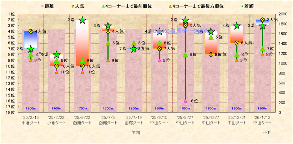 近10走 人気−着順-位置取りの推移 |