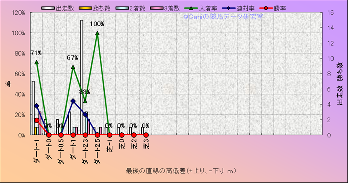 コース、最後の直線の高低差別成績(平地) |
