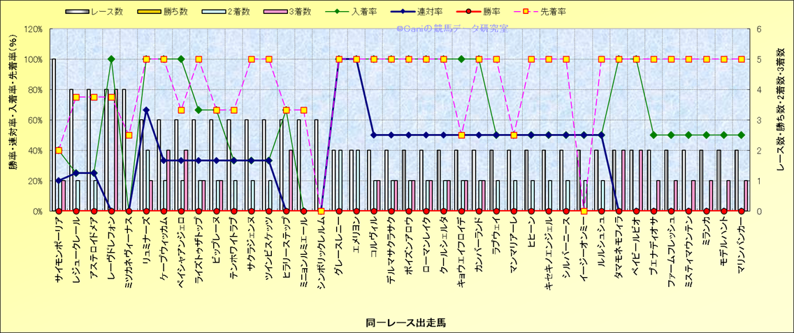 ライバル(相性)解析 同一レースに下記馬が出走した場合の成績とその馬に先着する先着率 |