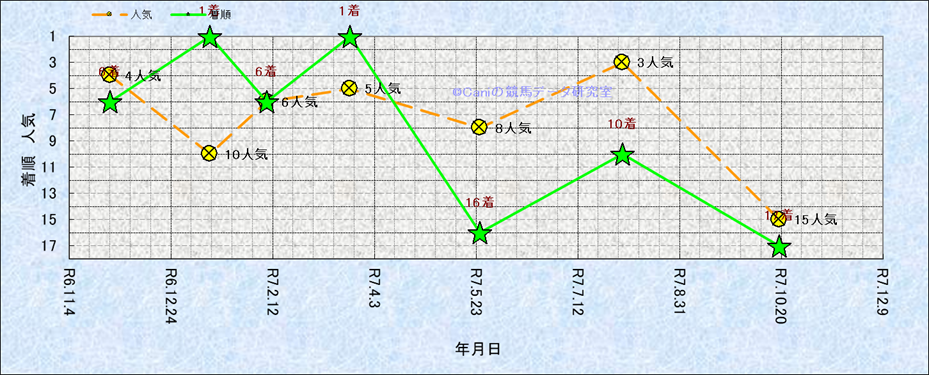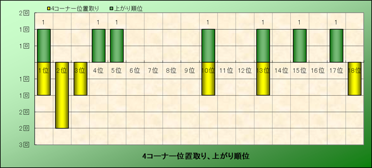 脚質解析 近20レースの4コーナーでの位置取りと上がり順位(頭数補正後) |