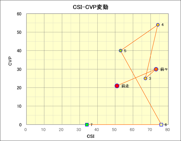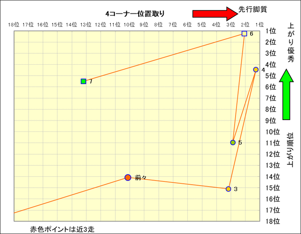 近走における4コーナーでの位置取りと上がり順位(頭数補正後) |