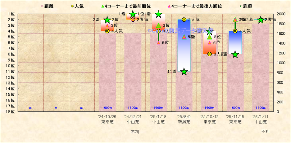 近10走 人気−着順-位置取りの推移 |