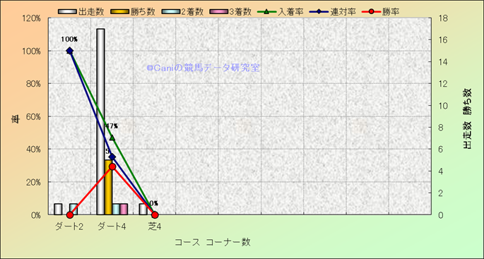 コース、コーナー数別成績(平地) |