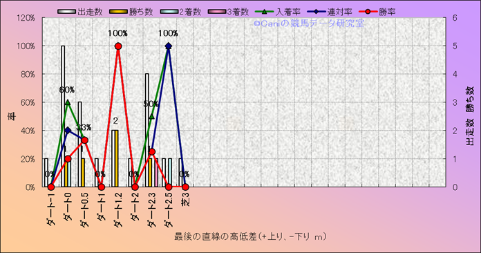 コース、最後の直線の高低差別成績(平地) |