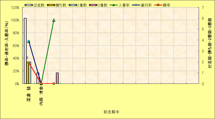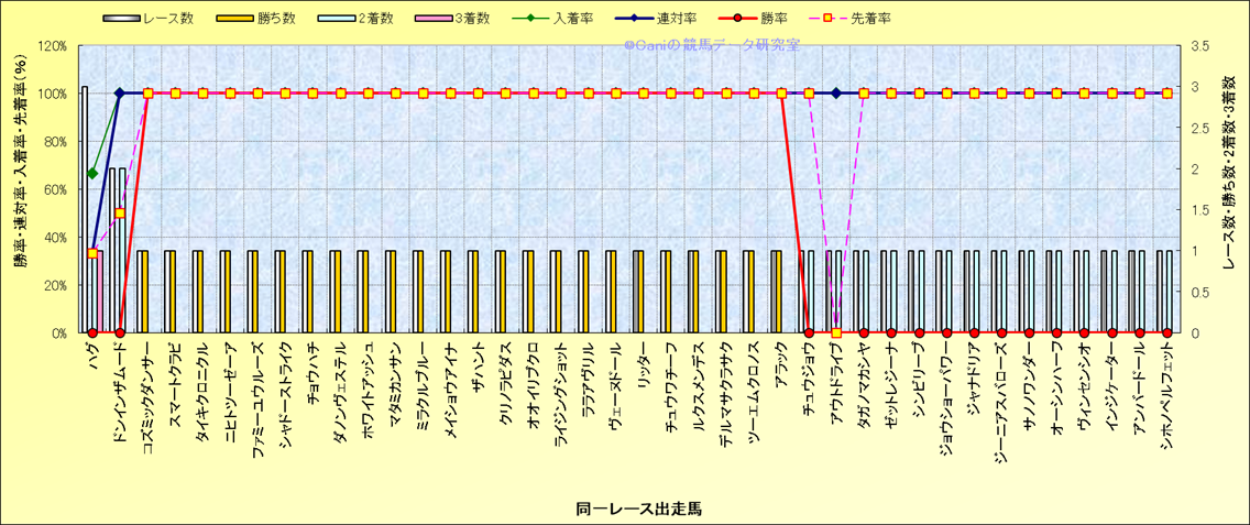 ライバル(相性)解析 同一レースに下記馬が出走した場合の成績とその馬に先着する先着率 |