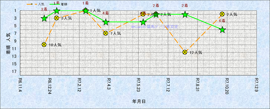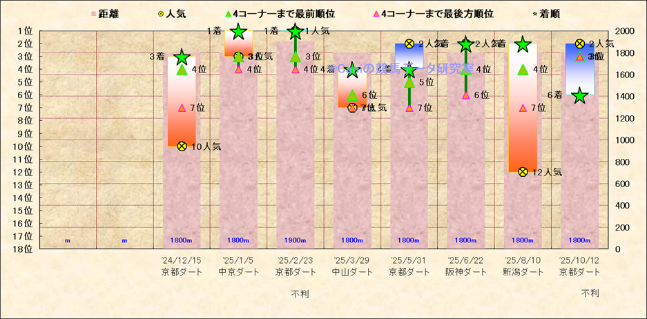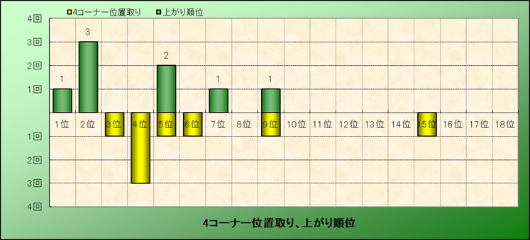 脚質解析 近20レースの4コーナーでの位置取りと上がり順位(頭数補正後) |