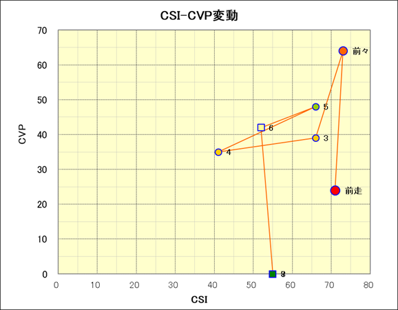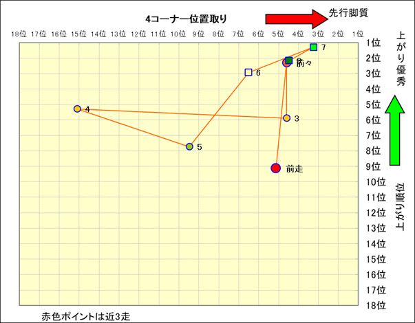 近走における4コーナーでの位置取りと上がり順位(頭数補正後) |