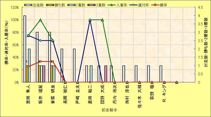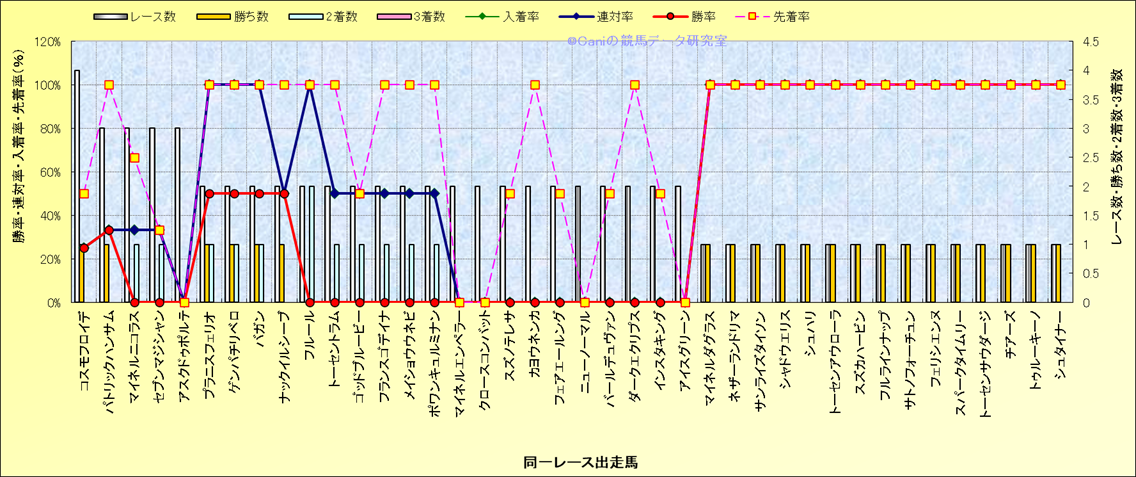 ライバル(相性)解析 同一レースに下記馬が出走した場合の成績とその馬に先着する先着率 |