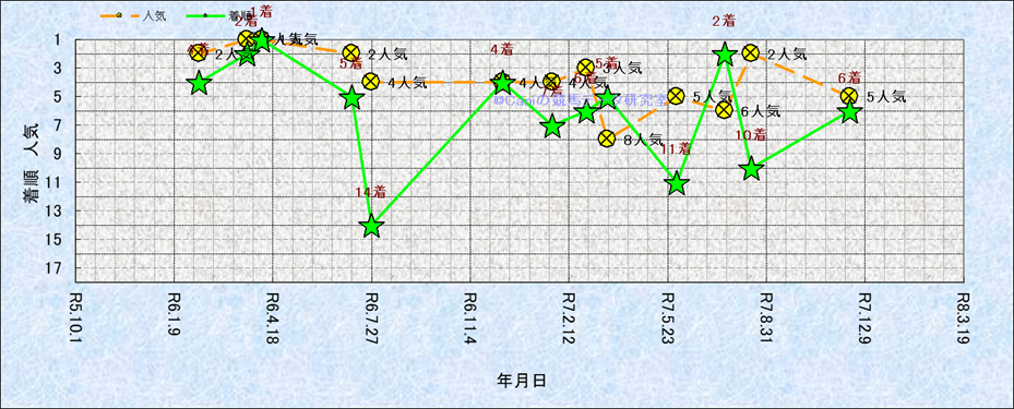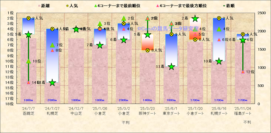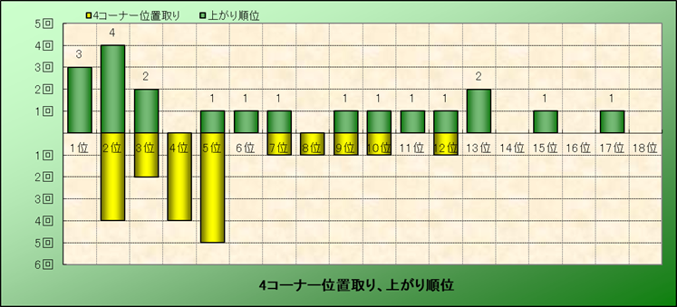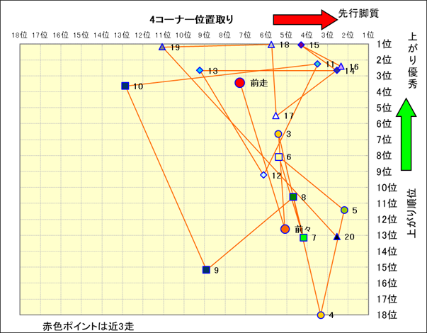 脚質解析 近20レースの4コーナーでの位置取りと上がり順位(頭数補正後) |